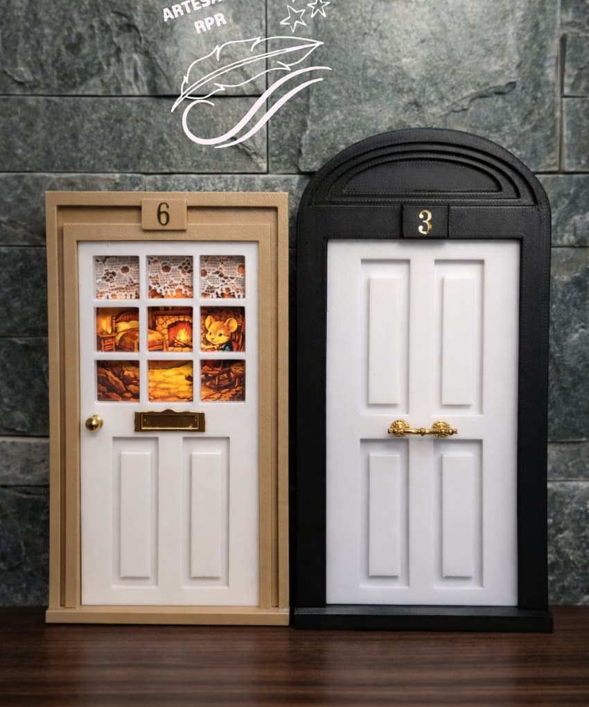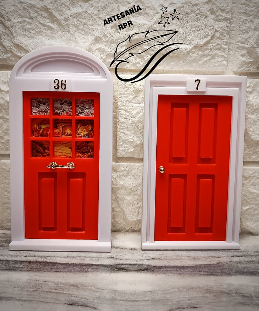 He diseñado y creado estas puertecitas en impresión 3D con mucho cariño, cuidando cada detalle: los relieves, el marco y esos colores alegres que llenan de fantasía cualquier rincón. Puedes elegir entre varios tonos disponibles —rosa, rojo, verde, azul y más— para que combine con la habitación o con la personalidad de tu peque.